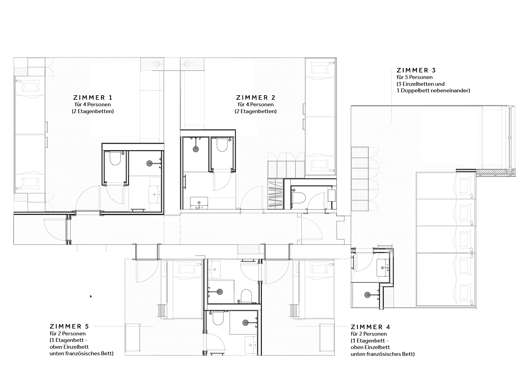 With 26 beds in 8 rooms, a modern commercial kitchen, and the cozy lounge in the old waiting room, we offer a lovely setting for groups of all kinds and larger gatherings.